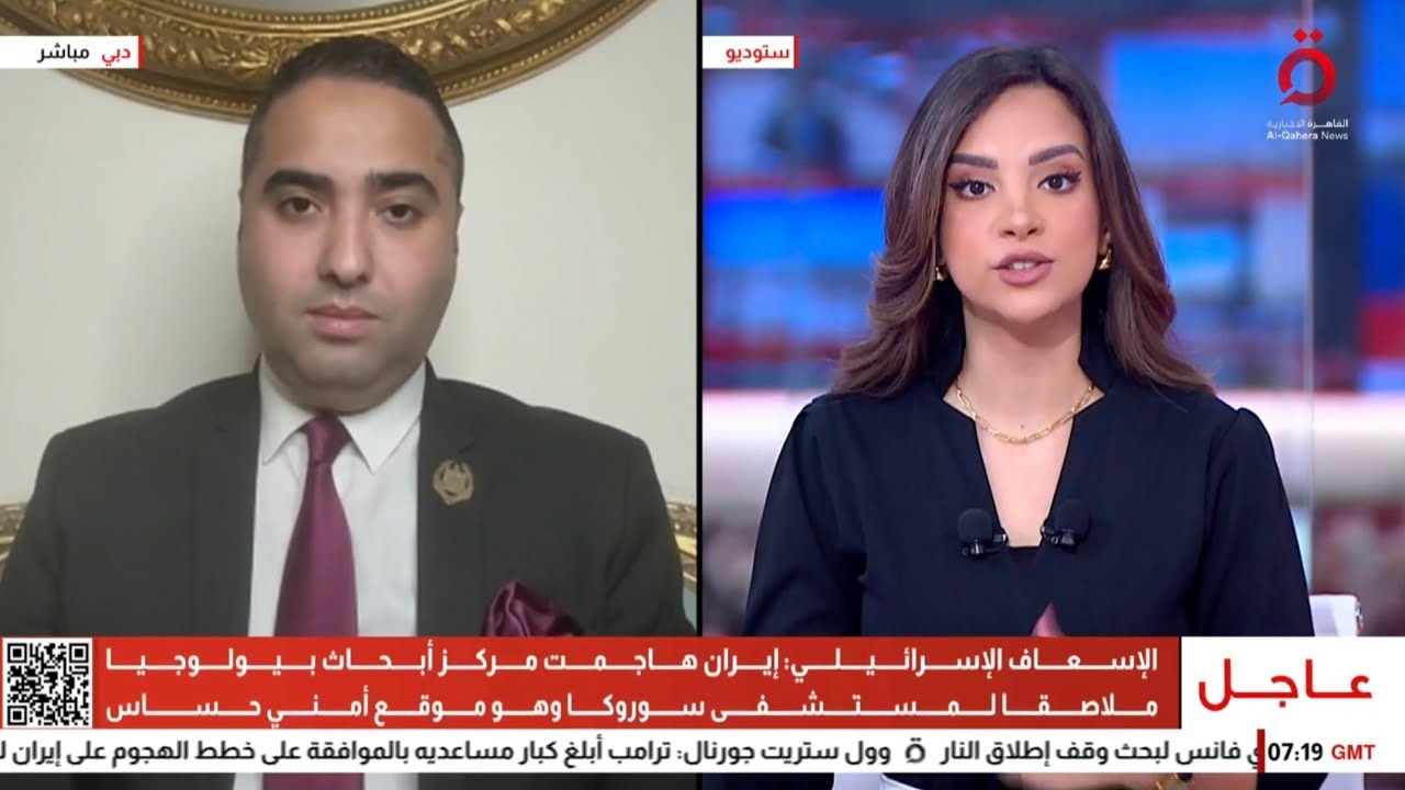 لقاء المستشار الدكتور محمد محمود مهران أستاذ القانون الدولي العام عضو الجمعيتين الأمريكية والأوروبية للقانون الدولي علي قناة القاهرة الإخبارية في تغطية خاصة للحديث عن موقف القانون الدولي من الانتهاكات الإسرائيلية واستهداف المنظومة النووية الإيرانية في الحرب الأخيرة التي شنتها #إسرائيل علي #إيران #دكتور_محمد_مهران #تل_ابيب #طهران #القانون_الدولي